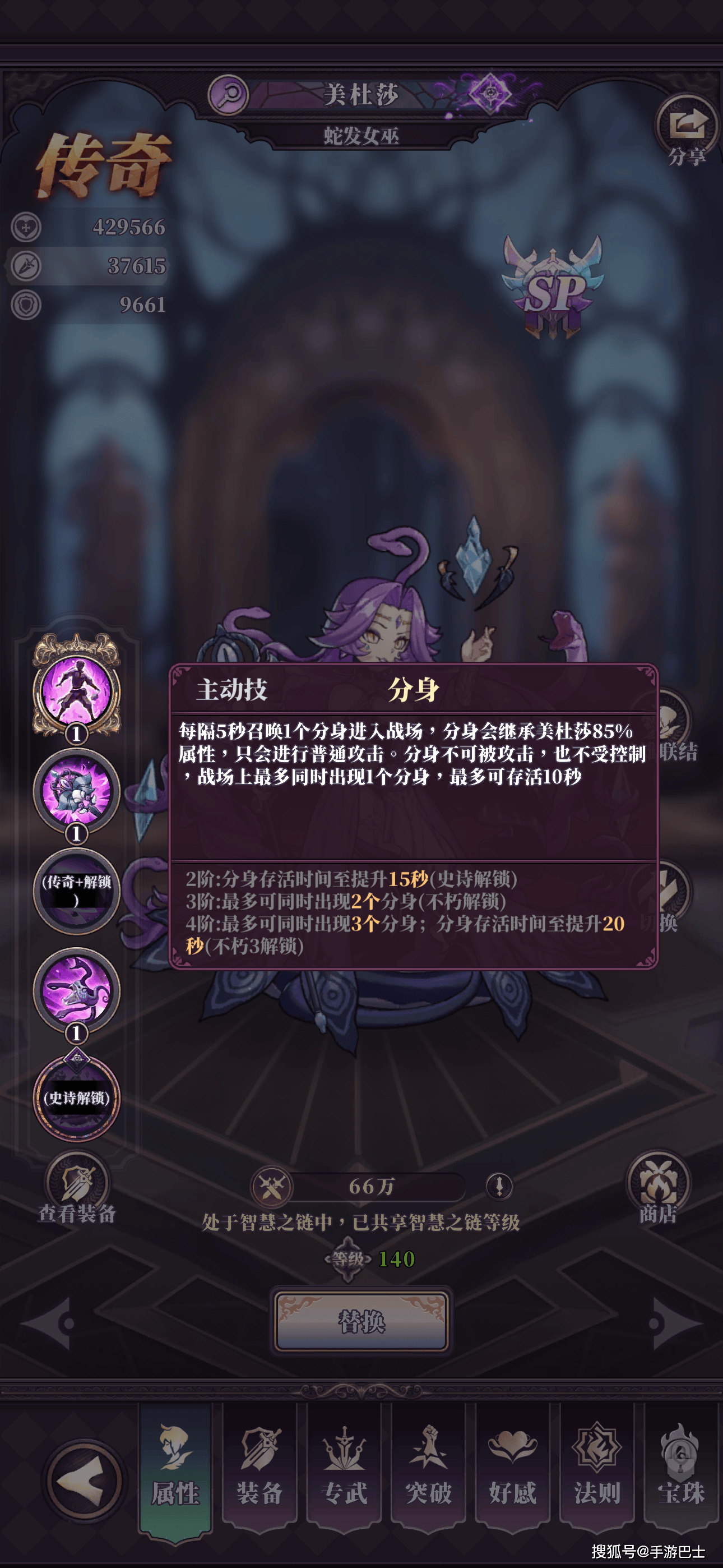 手游巴士(www.shouyoubus.com)2026年01月23日:在《绯石之心》当前版本中,SP英雄美杜莎绝对是最值得关注的功能性核心之一。这位自带蛇发女妖神秘感的法师,集群体控制、能量压制、阵型破坏与分身承伤于一身,无论是PVE推图深渊,还是PVP竞技场巅峰对决,都能稳居T0.5及以上强度梯队。不少玩家入手后却陷入迷茫:品质怎么升、技能怎么点、装备怎么配?今天这篇养成博客,就把美杜莎的核心养成要点一次性说透,助你快速打造版本强控杀器!