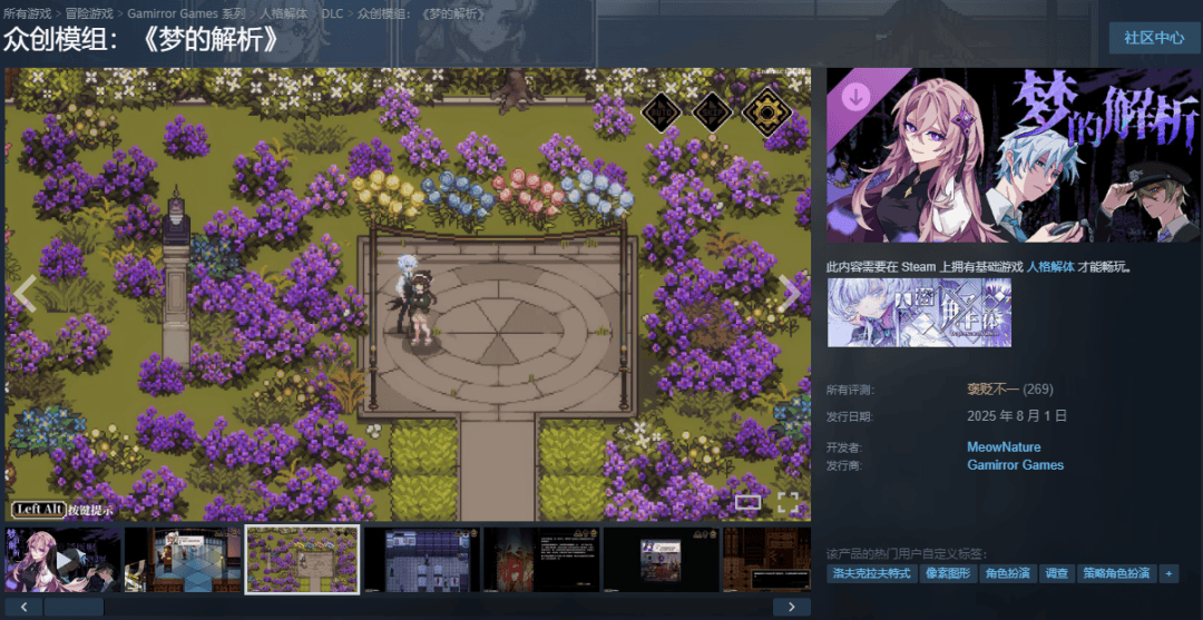 其实严格来说,《人格解体》并非没有赚到钱。这款基于COC克苏鲁风格的跑团游戏,2022年以EA (抢先体验)版本上线Steam,2024年转正。截至目前,游戏93%好评,销量突破22万套,扣除平台和发行抽成后,到手总收入约700万元。
