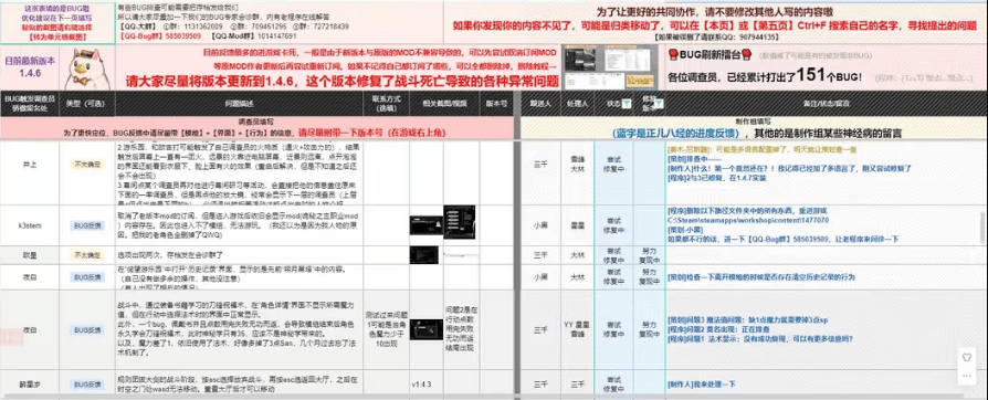 团队使用腾讯文档作为收集玩家反馈的主要工具。每个大版本开一个新文档,玩家在里面实时填写Bug或建议,制作组在后面实时批注“收到了”“已修复”“归档”——听起来就像是回复甲方时说的话。