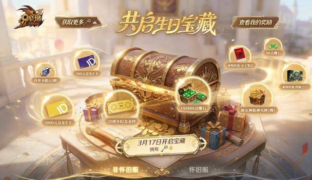 1月28日开启“同心组队”,和兄弟一起做任务拿限定背饰;2月4日开启“个人回忆录”,回顾征程可得1000恒晶石宝匣[绑]和生日宝藏钥匙;2月27日“留言祝福”同样有好礼相送。压轴大戏“生日宝藏”将在3月17日开启,使用钥匙可抽取188888点魔石、创灭神焰神火匣[绑]、封灵箓[绑]等游戏豪礼,更有20周年纪念金钞、官方设定集等典藏实物周边等着你!