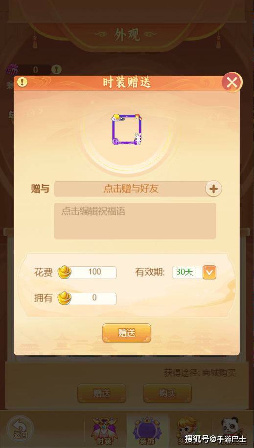 手游巴士(www.shouyoubus.com)2026年01月27日:在《逍遥情缘》手游里,真挚的情谊是最珍贵的宝藏。那些与你一同闯荡三界的朋友,终将成为你记忆中温暖的光。为了珍藏这份相遇,游戏中也贴心地准备了“赠礼”功能。如果你想送好友一件时装加深感情该怎么做呢?今天就来给你演示一下。