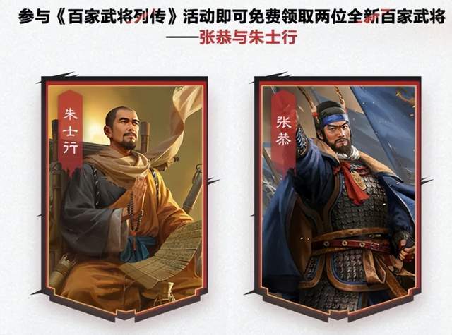 还有个重磅好消息:两位全新百家武将张恭和朱士行,将限时免费领取!2026年1月28日至3月1日活动期间,玩家通过“风云大漠”主题活动入口参与活动,即可免费获取。