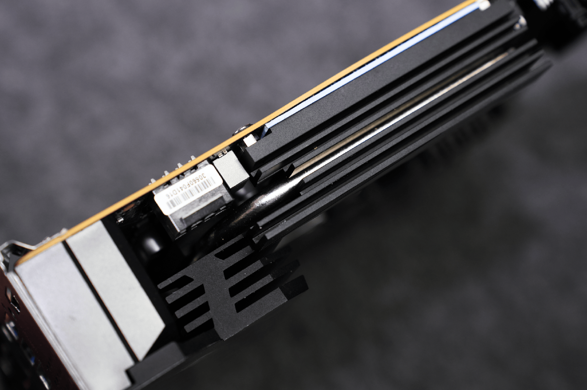 还有散热方面,主板的VRM散热区域配备了一体式散热装甲,不但有大尺寸的金属鳍片还加入了6mm直径镀镍热管,配合高导热硅胶垫(导热系数12W/m・K),散热表现也是非常不错,确保主板在高负载环境下的稳定持续性能释放。