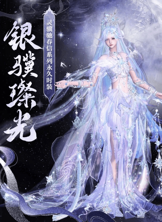 而最让人心动的,莫过于此次新春版本推出的新时装!适逢马年新春,此次马年灵骥驰春信系列时装的设计融入了诸多“马”元素。就拿这套时装【银骥璨光】来说,它紧紧围绕天马与星霜这两大意象展开设计。女款采用高腰束身与广袖流云相融合的版型,男款衣身则由锦缎织就,其上以银线绣出若有似无的星河图卷。尤为值得一提的是,两套时装的面部皆巧妙地融入了战马前额护甲的形状,与马年新春的主题相呼应,勾勒出一幅雄驹驰骋过大漠、脚踏星河的梦幻景象!
