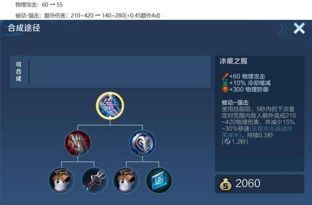 解析:这次调整主要降低了冰痕之握的前中期伤害,后期伤害会随额外Ad而提升。当额外Ad大于312时,则后期伤害会有所增加,所以这件装备更适配高攻击的英雄。