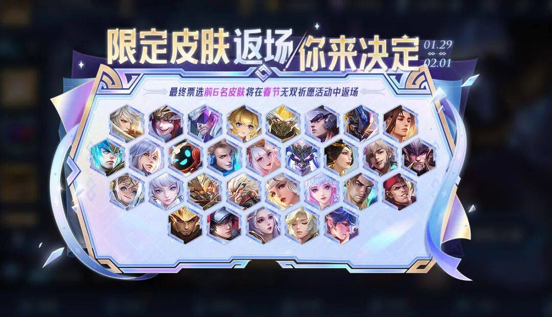 王者荣耀春节档无双祈愿返场皮肤的投票活动,已经于1月29日正式开启。不知道你是投给了哪些皮肤呢?