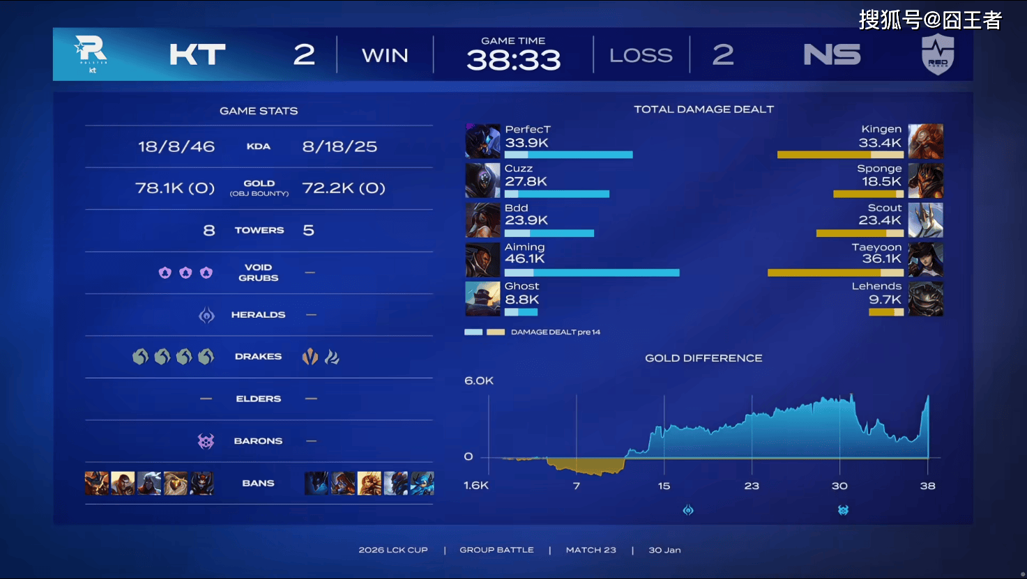 最终NS拒绝让二追三,五局战胜KT。坦率地讲,囧王者觉得KT确实是蛮倒霉的,先是被大优势被T1反打,现在又被NS五局战胜,我要是BDD,道心已然是破碎了。