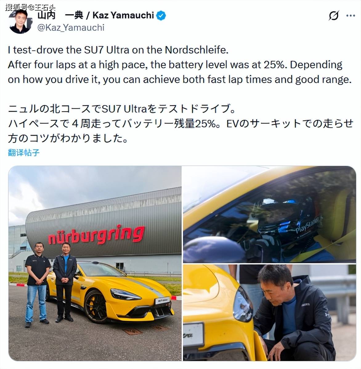 这代表什么?代表SU7 Ultra的性能表现、车辆数据、驾驶质感,得到了这位世界顶级汽车游戏设计者的专业认可。这不是商业广告,这是硬核实力的认证。