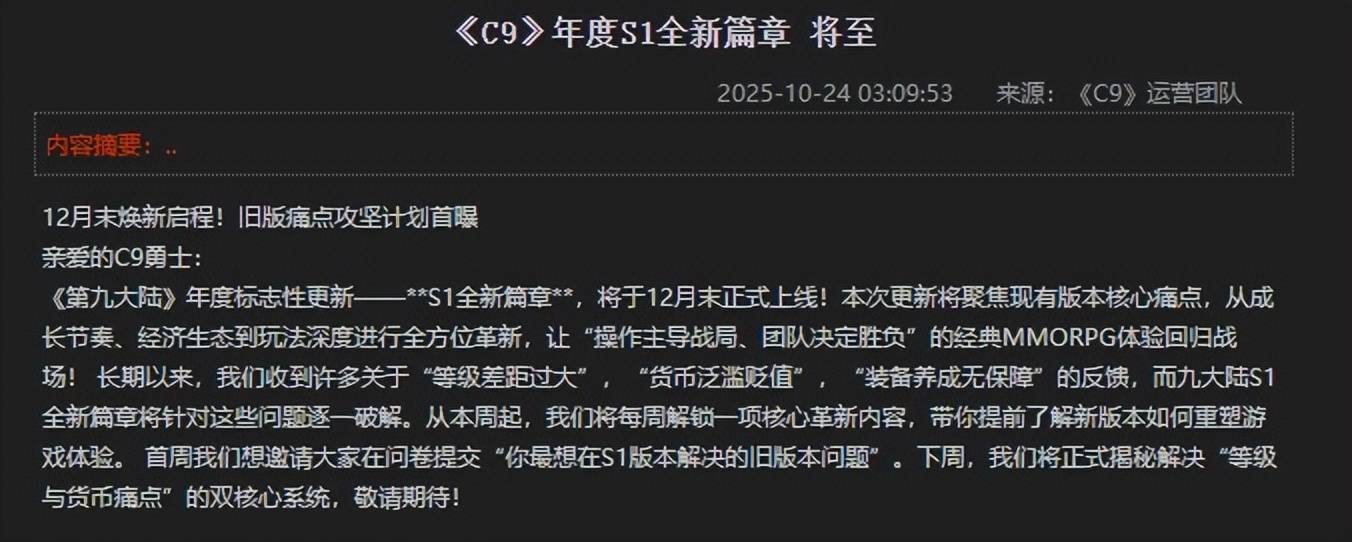 在25年年底,运营方刚放出公告,预告了“年度S1新篇章”,一时间吸引了大量玩家的关注。