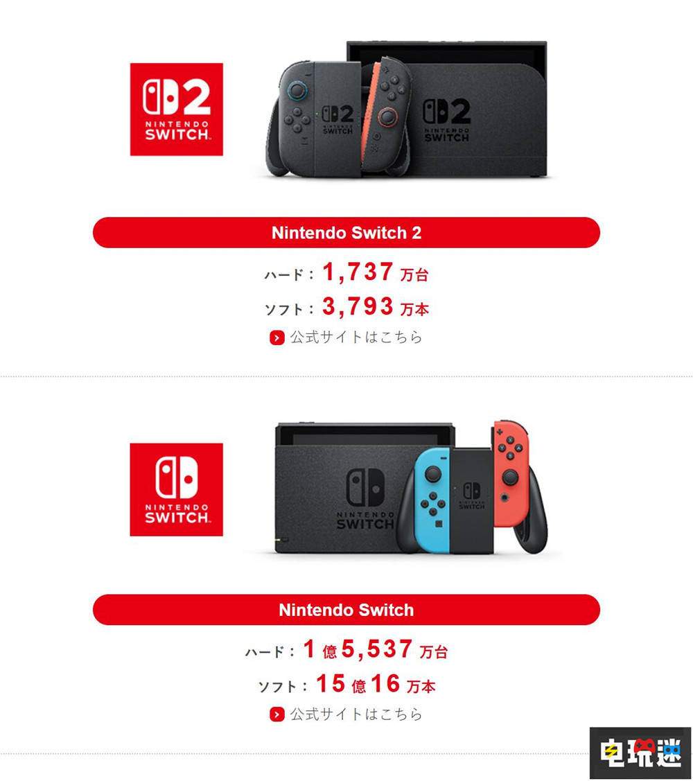任天堂公开了2026财年第三季度财报。作为主力游戏机的任天堂Switch2截至2025年12月31日累计销量达到1737万台,前代老将任天堂Switch累计销量达到1亿5537万台,已经超越任天堂自家DS系列掌机位列第二名,并成为任天堂销量最高的游戏机。