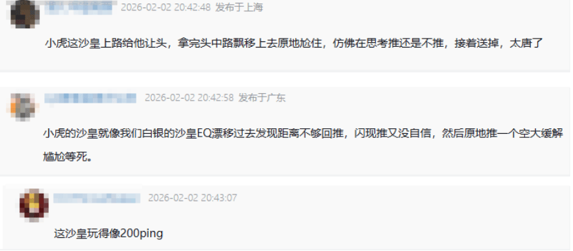 对于xiaohu的表现,网友则这样评价:“小虎这沙皇上路给他让头,拿完头中路飘移上去原地尬住,仿佛在思考推还是不推,接着送掉,太唐了”、“我黑铁的时候第一次玩沙皇就这样,好不容易飘过去了,看见对面的站位思考该向哪边推,然后吃了一堆aoe死了。这xiaohu原来是黑铁水平”、“小虎太夸张了,中期ez经济被韦鲁斯反压的时候我以为blg已经没得玩了,结果小虎一波就送爆了”。不得不说,xiaohu状态完全不在线,第一局败北与他有很大关系。