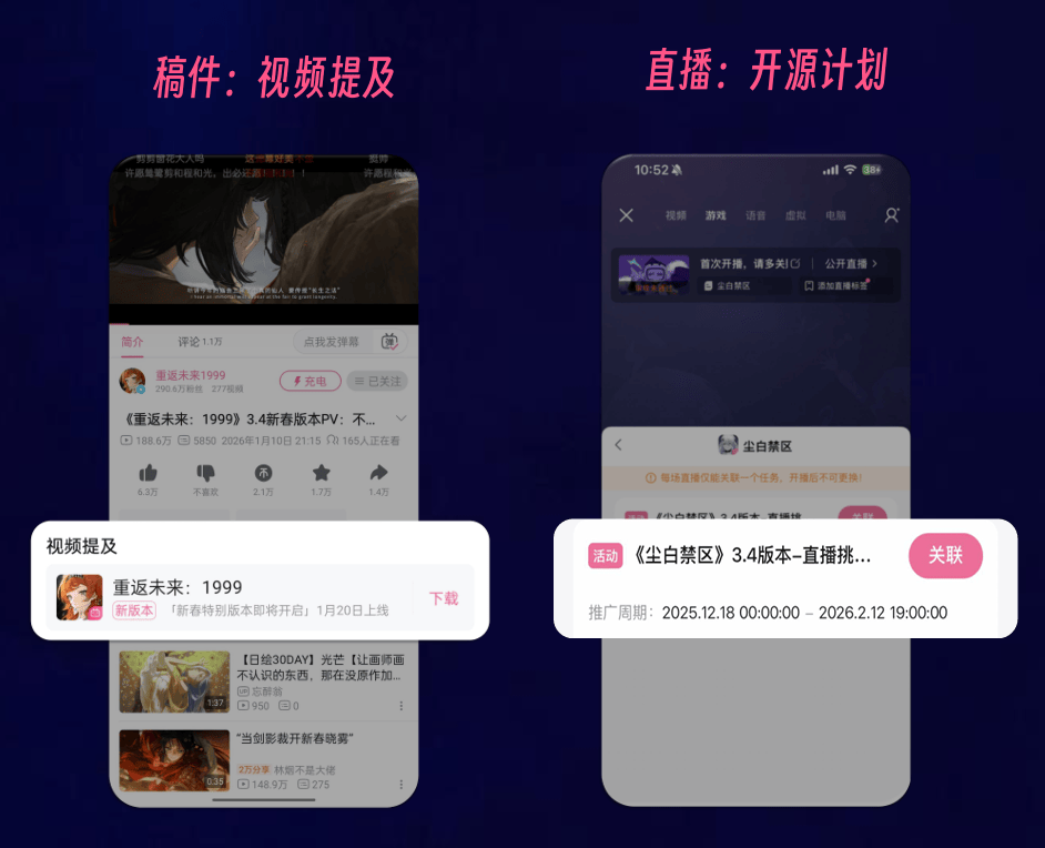 针对这群人,B站尝试了一种名为生态促销的模式,通过调控用户在B站消费的内容,将部分自然流量内容替换为更倾向于付费引导的内容(如角色强度分析、抽卡建议),而非单纯的剧情二创。