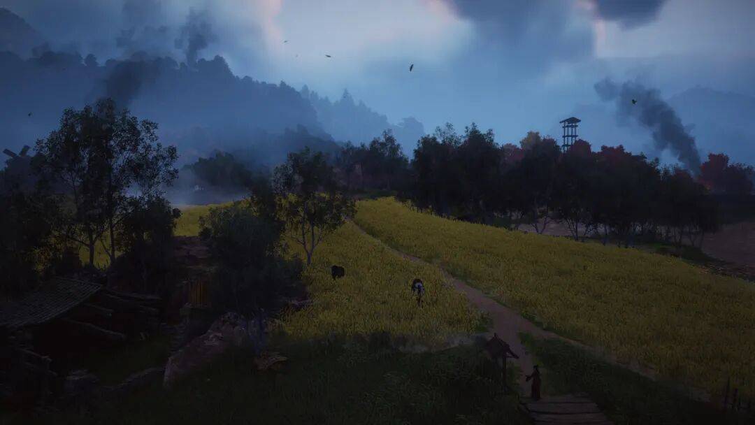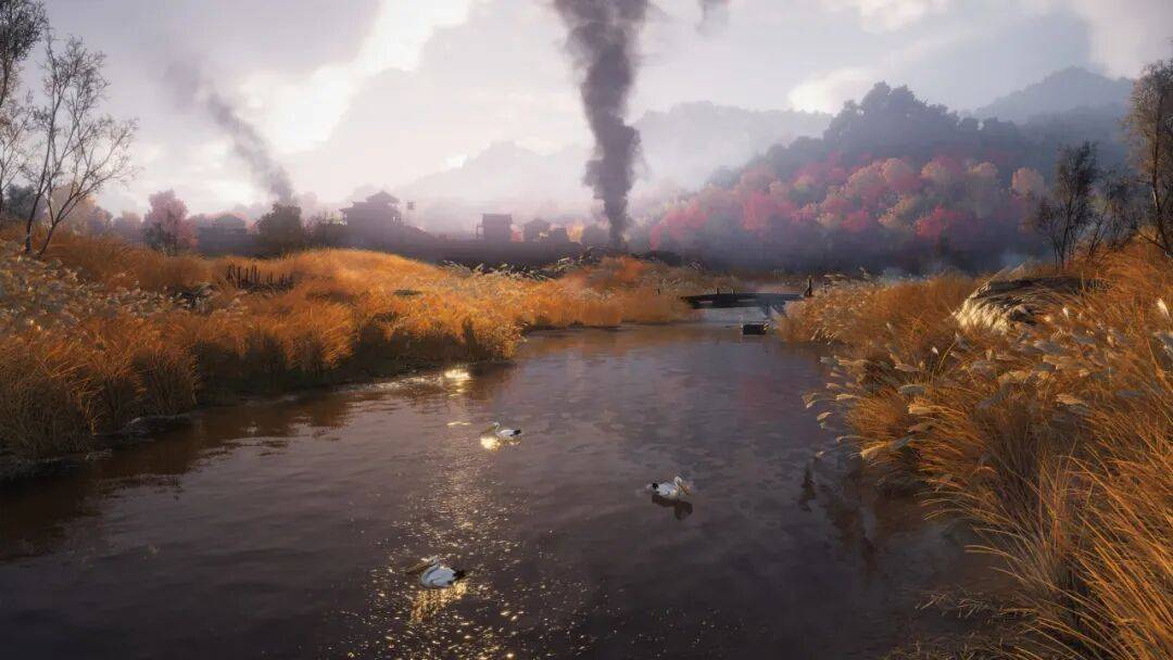 EverStone:滹沱地理上在河北平原,平坦是它的特征。我们着重呈现了战争氛围,大家会看到比人还高的枯黄芦苇、远处的硝烟、浓云,以及平原上游荡劫掠的契丹骑兵……它充满战争的肃杀感,与不见山前面的深山密林、云海景观截然不同。