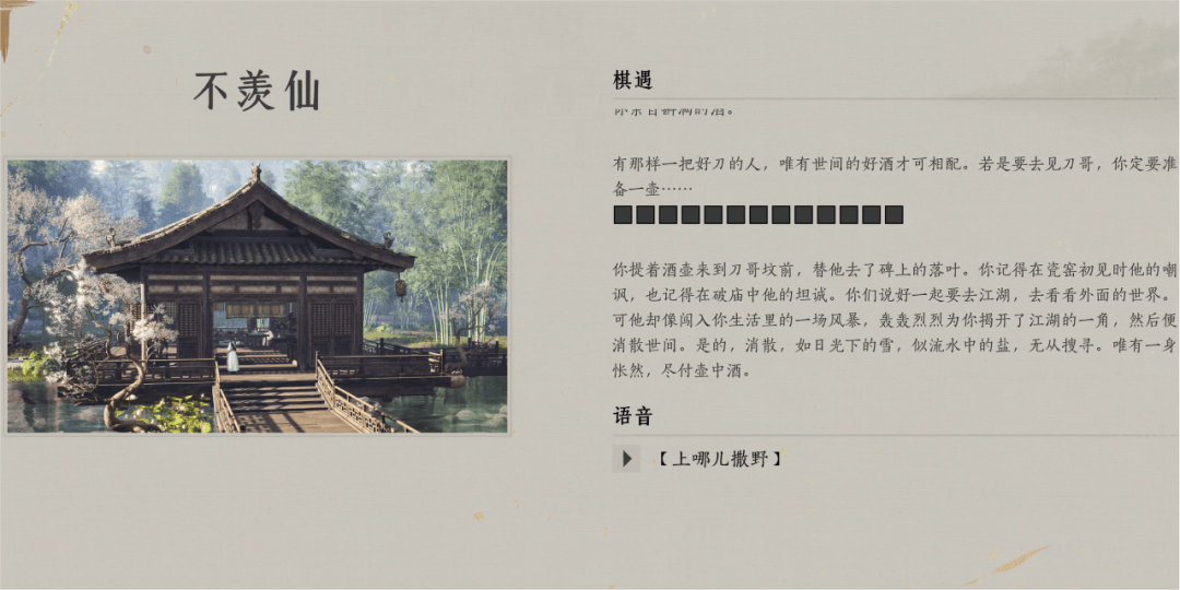 最终决定做滹沱,还有另一个考量:根据规划,不见山第三个子区域上线的时间,恰逢少东家在江湖游历满一周年。我们希望能在这个特殊节点,给玩家一整年的经历做一个呼应,讲个更具分量的故事。
