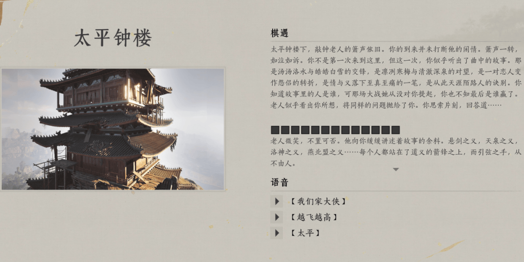 葡萄君:游戏最早在清河和开封就有不少关于中渡桥之战的线索,河西末尾又明示了「少东家是中渡桥遗孤」,现在不见山滹沱也联系起来了……你们一开始就想好用这条暗线串联大区域吗?