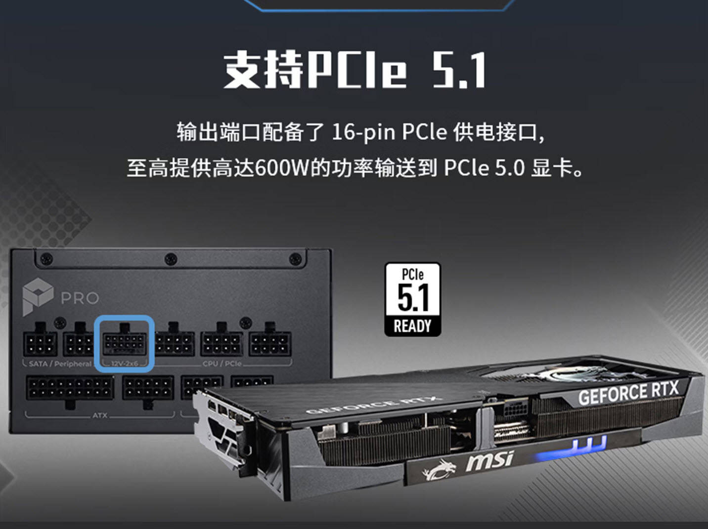 供电稳定性方面,电源采用全模组设计,配备1个最新的12V-2X6接口(即ATX3.1标准下的12VHPWR接口)、24pin主供电接口、5个PCIe和CPU混插接口、2个SATA以及D型接口,线材采用压纹模组线,远看呈现编织网包线的效果,实际由铜线芯和PVC塑料材料组成,外层经过压花加工,柔软度适中,既方便玩家理线,又能保证电流的稳定传输。其中,12V-2X6单接口可提供600W的功率输出,并且可以承受负荷最高300%的瞬时峰值功耗,能够完美适配新一代PCIe5.0显卡,应对显卡在高负载游戏中的瞬时功耗峰值,避免因供电不足导致的显卡降频、游戏卡顿等问题。