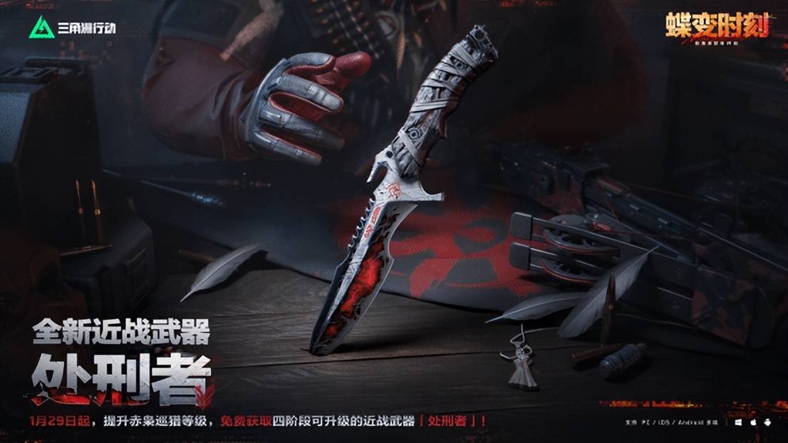 拣重要的说,首先便是从1月29日起,玩家们便可以通过参加赤枭巡猎玩法或者全面战场专属活动,来免费解锁首款可四阶段升级的传说近战武器“处刑者”,升级之后可以解锁全新收刀动作、检视动作与外观特效。