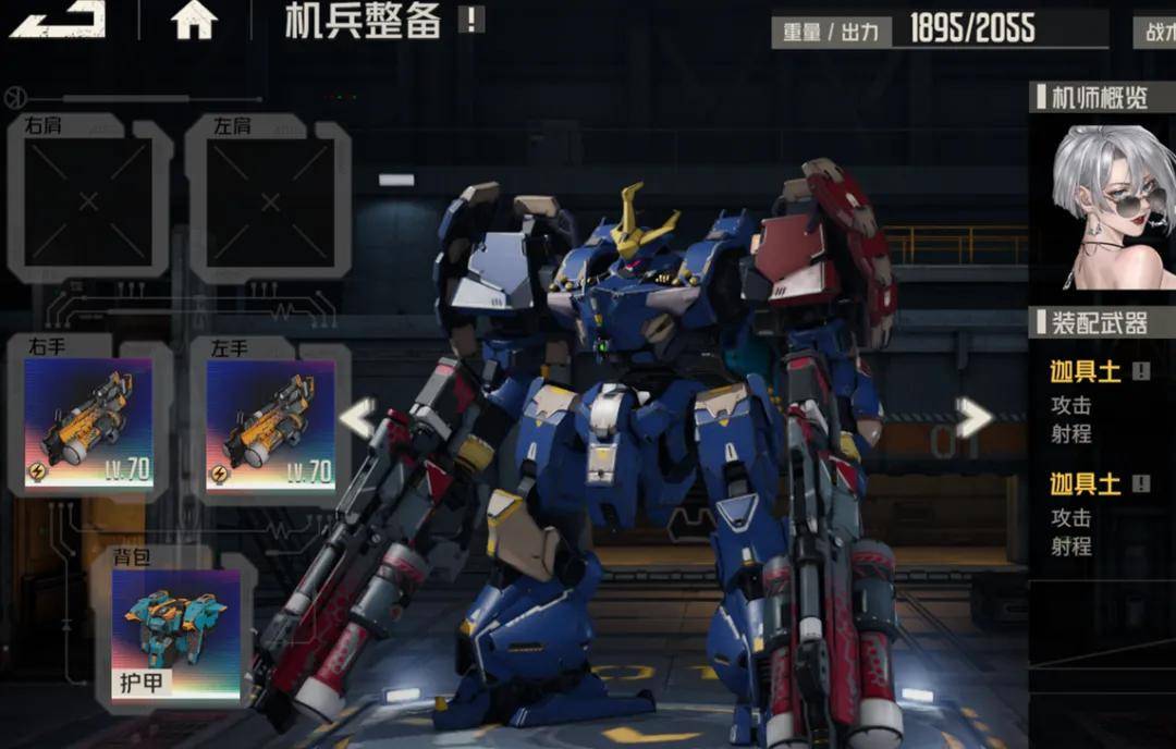 然后阿黛勒的专属机兵影舞者的出力如上图所示,什么都不带时的剩余出力为1110点,还算不错。