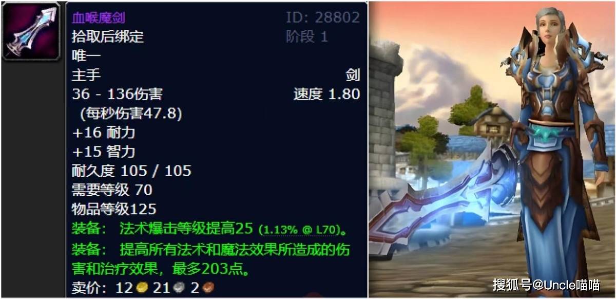 卡拉赞作为小团本,基于人数的问题,最容易引发狂热的武器,喵叔给到法系DPS前期极品的王子匕首,这玩意甚至有大兄弟豪言壮志用到了太阳井高地,喵叔不禁感叹这是天选排骨人啊!