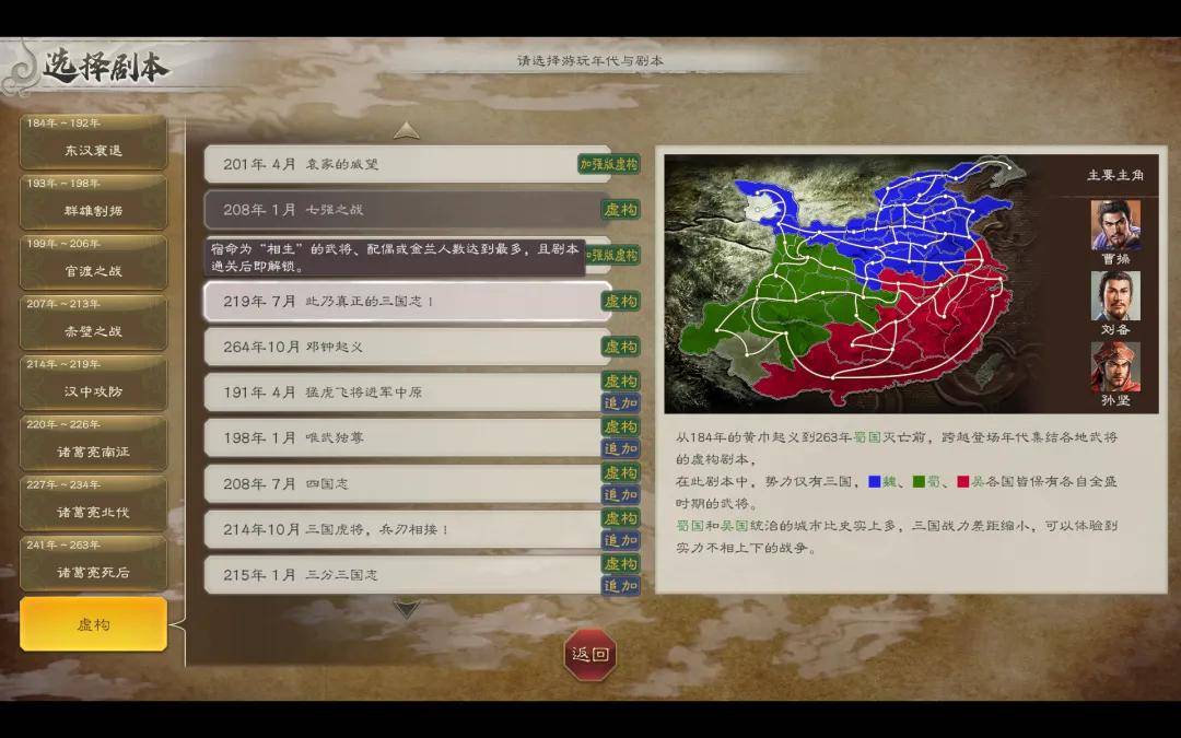其次,内容上新增了多个虚构剧本,例如假设刘备于落凤坡身亡后刘封称王的“汉中王刘封”,以及所有登场武将能力值均低于80的“凡将集结”