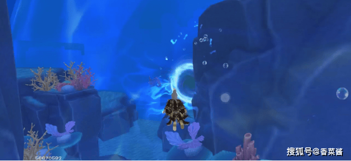 点击进入龙宫之后,我们进入坑洞中跃入光怪陆离的地底通道就可以来到海底。
