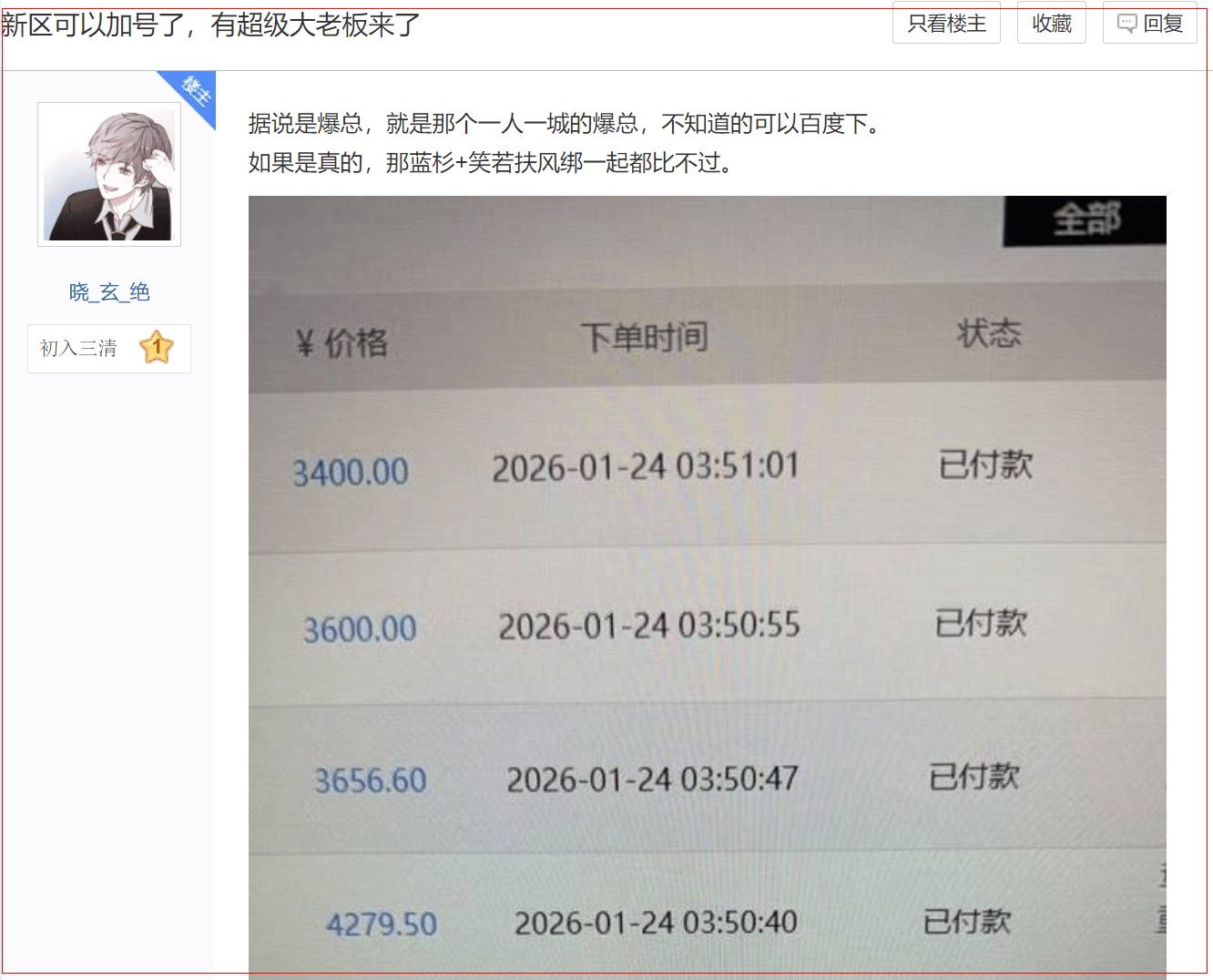 截至目前,【2026】服内的神豪们依旧玩的十分热衷,疯狂砸钱下也让游戏内的金价居高不下,据资深“搬砖党”估算,新服热度还能维持很长时间,因此许多网友目前都在疯狂买号入坑!