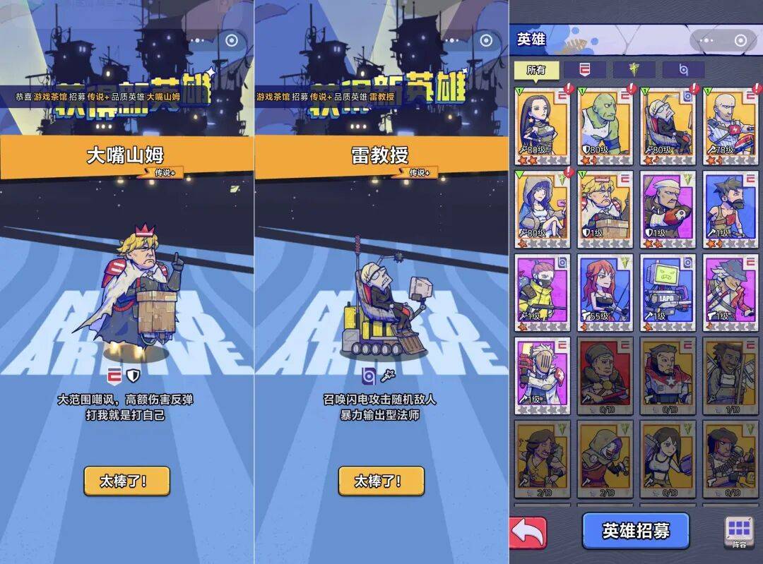 在英雄设计方面,该游戏加入了很多能让人会心一笑的形象元素,比如金发懂王、轮椅教授、鬼火杰森等等,这在也为游戏前期获量提供了更多的素材优势。