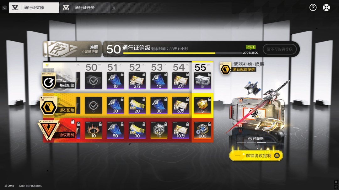 二档呢,是需要玩家用抽卡资源“ 合成玉 ”购买,完成全部通行证任务后,就可以返还更多合成玉;
