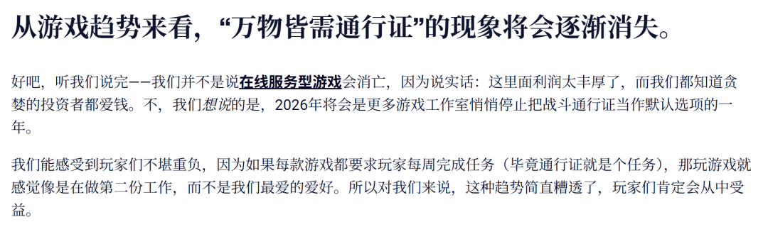 像 GamesHub 这家海外媒体的猜想,就更为激进,他们甚至认为以后的游戏中将不会出现通行证,因为这让玩家越来越不堪重负。