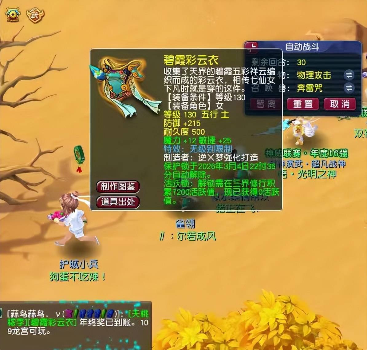 昨晚,一位少侠通过传音分享了追梦成功的喜悦——在鉴定130级装备时,他成功收获了一件基础防御为国标属性、额外增加37点魔力与敏捷的无级别女衣。这件女衣属性中规中矩,属于X9玩家可用于比武PK与竞速任务的双用小神装。