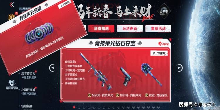 手游巴士(www.shouyoubus.com)2026年01月22日: 哈喽,各位CFer大家好~新版本马上更新,要说让人最期待的莫过于2月16日上架的竞技荣光钻石夺宝,这次更有新春送福利,免费领取50连抽。而本期资讯主要为大家带来柯尔特-竞技荣光、铁锹-竞技荣光的爆料,话不多说,火速发车~
