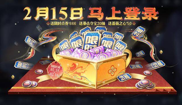 参与2月12日~2月21日开启的小王送福活动,每日竞猜可必得限时点券,在2月15日和16日参与竞猜,必得68限时点券。其次,每天竞猜有概率暴击,可获得大量限时点券和红包。