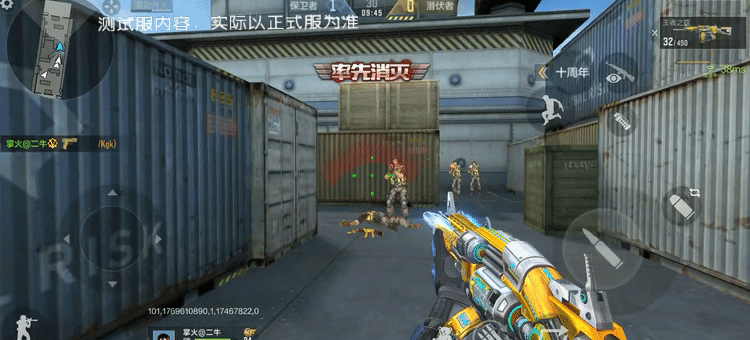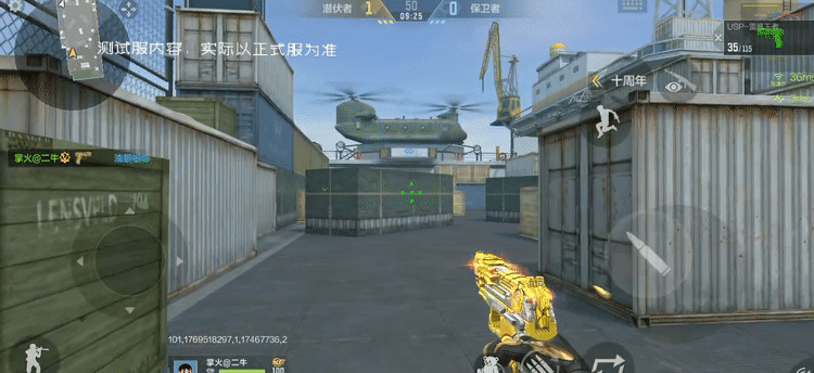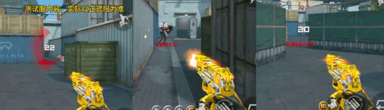 最后是实战展示,基础伤害38,中距离伤害26,远距离伤害18。我们以团队竞技-运输船为例,靠近中路集装箱位置射击,伤害普遍在22-26之间,近距离则在34-38之间,站在复活点前进行远距离射击时,伤害在20点左右。由此可见,USP-雷暴王者伤害并不占优势,可以依靠超快的射速来弥补伤害的不足。