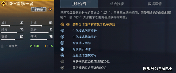 不仅如此,USP-雷暴王者还是一把生化利器,在生化模式中伤害、载弹量都得到了提升。