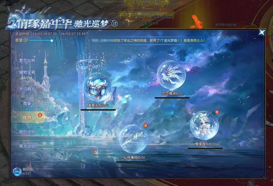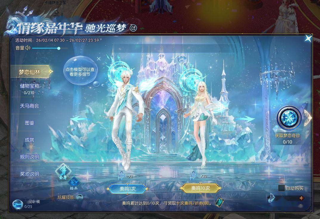怎么拿这些好东西?主要靠活动道具“奏爱仙琴”。在梦恋仙林进行“奏鸣”,每次都有概率直接爆出“永恒誓约外套包”、“虹翼驰光幻魂箱”等大奖,同时积累“奏鸣值”。奏鸣值达标后可解锁“梦恋奇珍”,首轮能稳定拿到9种不重复的珍品,包括灵曦系列外观、辉翼溯梦幻魂箱、各类碎片等;次轮奖励虽然可能重复,但也有机会开出“永誓守护·穹光”背饰和大量“恋之羽”。