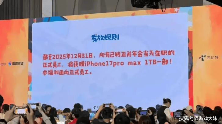 知名游戏公司年终奖公布,直接送一套房,光手机就送出去900万,当不少打工人还在为年会抽中一台手机截图炫耀时,吉比特和雷霆游戏直接把“阳光普照奖”拉到了行业天花板,人手一台1TB版 iPhone 17 Pro Max。