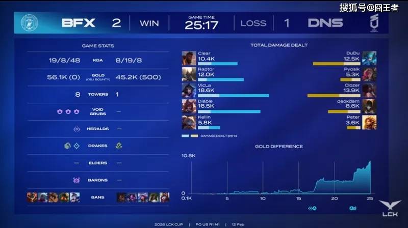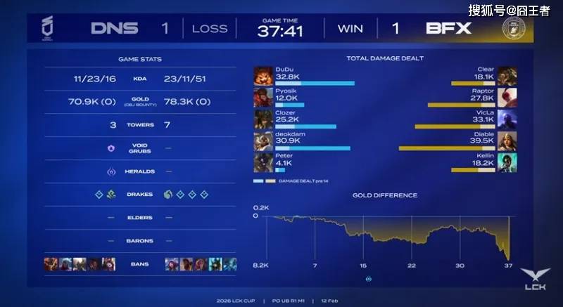 结果第二局比赛,BFX打出了碾压局。2分钟:龙龟gank下路配合队友拿下一血;5分钟:扎克gank下路配合自家队友击杀对方双人组;8分钟:Raptor扎克再次来到下路抓死对方双人组;14分钟:Peter芮尔团战逛街,BFX击杀DNS双c打出零换二;21分钟:DuDu武器坚毅不倒一人战至最后,双方打出四换四;26分钟:deokdam女枪配合Peter芮尔打满大招,DNS打出二换五延续悬念;28分钟:龙龟开团厄斐琉斯被对方锤石救下,BFX反打击杀龙龟随后拿到大龙团灭DNS;32分钟:DuDu武器一人拖住对方后排输出,DNS拿到远古龙打出一换五;37分钟:BFX中路开团瞬秒小火龙,随后推上高地一波结束比赛