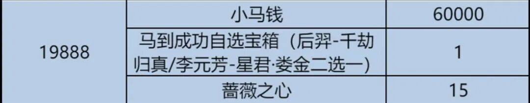 星君·娄金皮肤,可以在19888那一档获取,是和去年后羿的千劫归真二选一。换句话说,后羿千劫归真算是返场了。