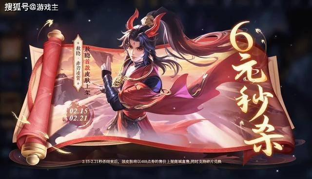 2月15日,会上架2款6元新皮肤,分别是吕布的舞狮寰和敖隐的赤刃凌霄,品质均为勇者。