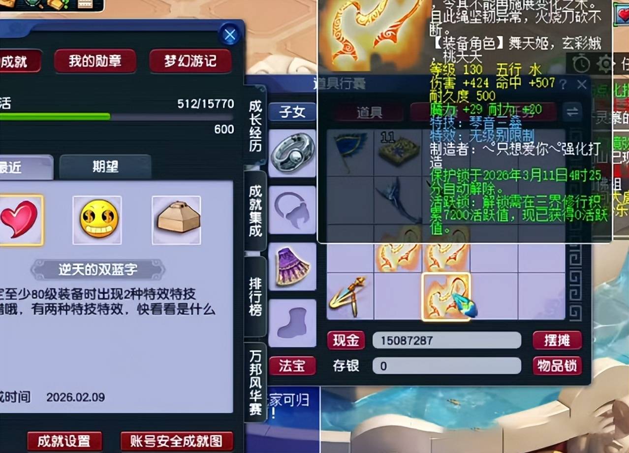 前天,一位少侠在鉴定130级武器时,成功炸出一条无级别琴音飘带。该武器基础伤害424并附带49点魔耐属性,可提供130点法伤;若打上16级太阳石,法伤属性将进一步提升至162点,极为适合精锐组龙宫、东海渊等法系门派佩戴。