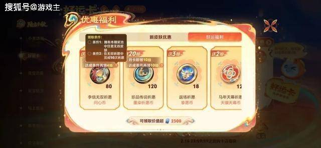 算下来,如果先原价入手所有新皮肤的话,就相当于有10010x2=20020贵族积分,后续再入手好运卡也有180x2=360贵族积分。