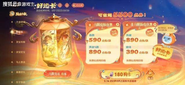 同理,李信的无双祈愿送4抽是400点券,伽罗的珍品祈愿送10抽是600点券,用180点券购卡也不会亏。