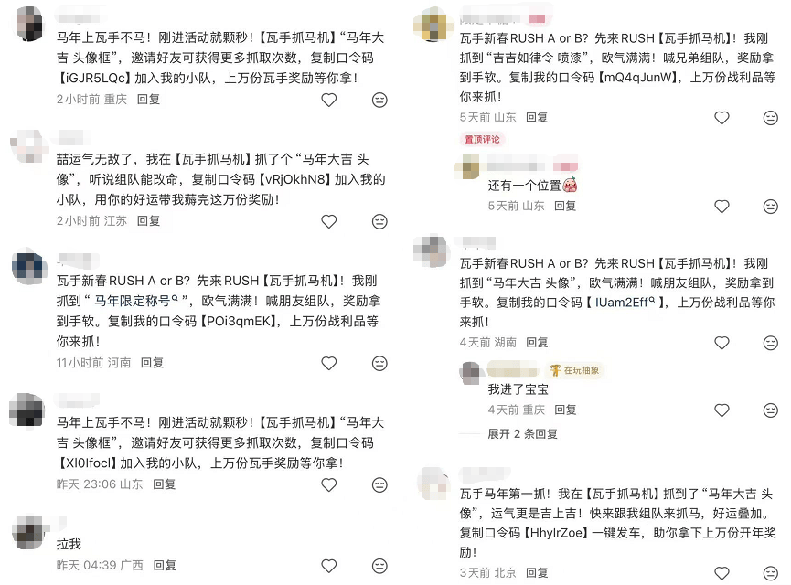 但至少在这个春节,千万玩家拥有了共同的旋律、共享的暗号,以及一个可以放心整活的空间。当"马年上瓦手不马"的口号在聊天框中弹出时,它传递的不仅是一个游戏邀请,更是一种属于这个时代的社交认同——在这里,竞技可以很专业,也可以很欢乐;玩家可以很硬核,也可以很"抽象"。