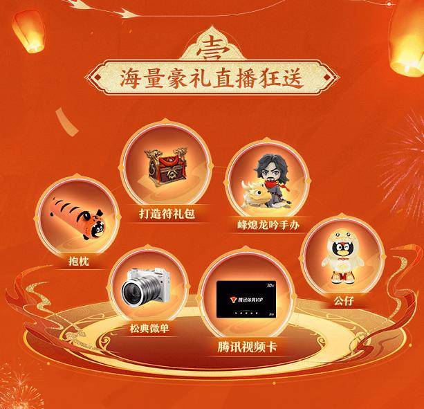 除了诚意满满的周卡,直播间更有超多重磅惊喜接连上线——龙吟手办、微单相机、腾讯视频卡等好礼轮番派送,每一次互动都有机会抱走福利,不负少侠们的每一份期待!