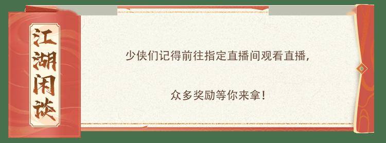 无论你是初入江湖、懵懂前行的萌新少侠,还是纵横江湖、身经百战的老江湖,都能在这场直播狂欢中收获属于自己的新春惊喜,人人有机会,福利不缺席!