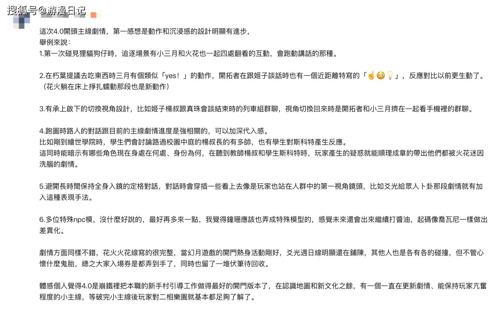总的来说,崩铁4.0完美诠释了欢愉主场的魅力,回归到太空喜剧的轻松氛围中,整个主线剧情体验下来感觉很不错,有玩家还发长评详细指出了崩铁在这个版本的进步,看得出确实对4.0版本很满意。