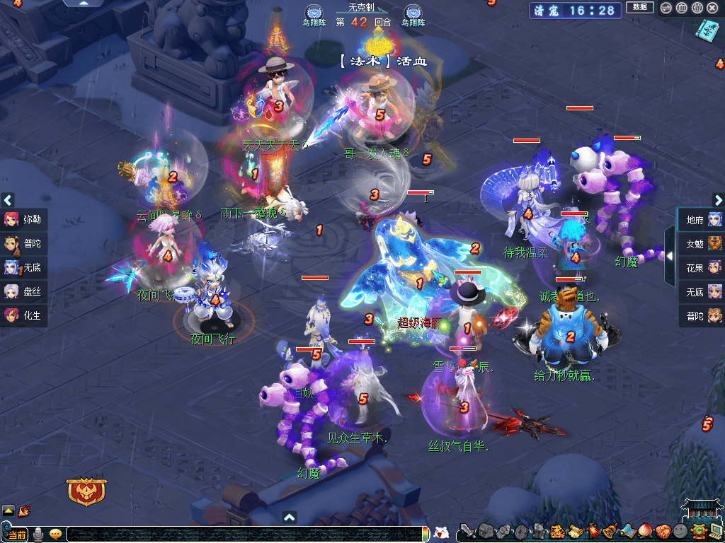紫禁城(观战方):阴曹地府、女魃墓、花果山、无底洞、咒师普陀;