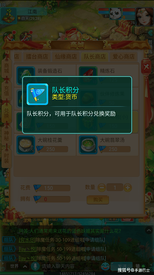 队长商店中陈列的道具虽不算顶级珍稀,却件件实用,涵盖日常消耗的方方面面:装备锻造石、精炼石、修炼果、阵法残页、宝石礼包,以及各种美味汤羹。这些道具在日常养成中消耗量巨大,若能定期用积分兑换,便能省下一笔不小的开支。