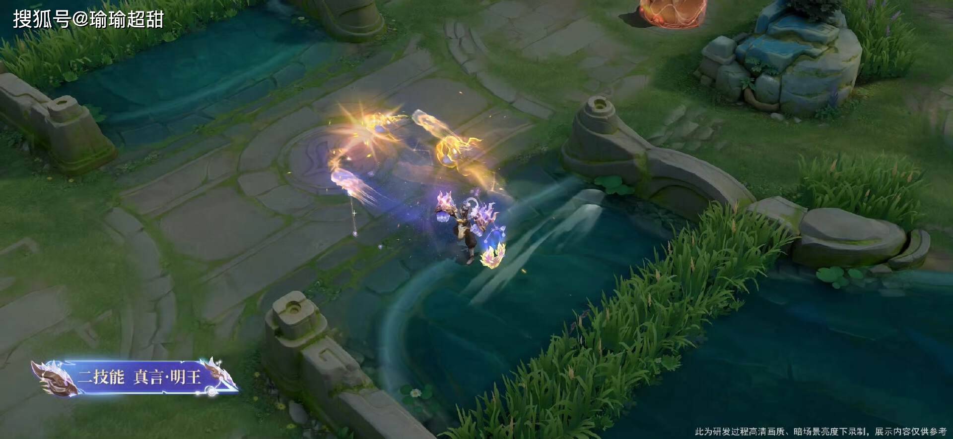 然后再来看一下一技能,位移的过程中,身后会展现拖尾特效,可以看到有二十八星宿相关的元素融入在里面。