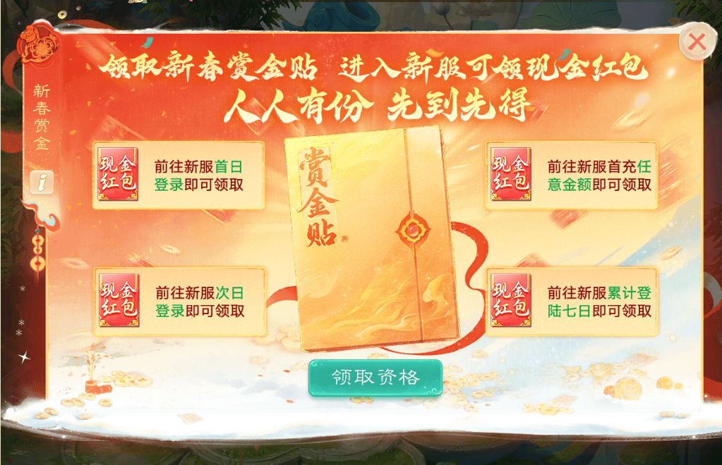 首先是新春赏金,大话手游2026进入新服跑新区,都可以领取现金红包,正如官方游戏内所展示:人人有份,先到先得!